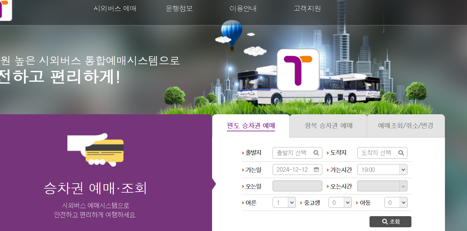- 시외버스통합예매시스템 ; 티머니홈페이지