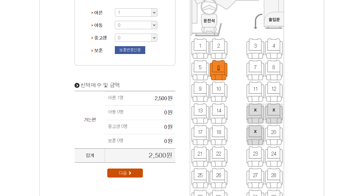 인원수를 입력하고 좌석을 선택합니다