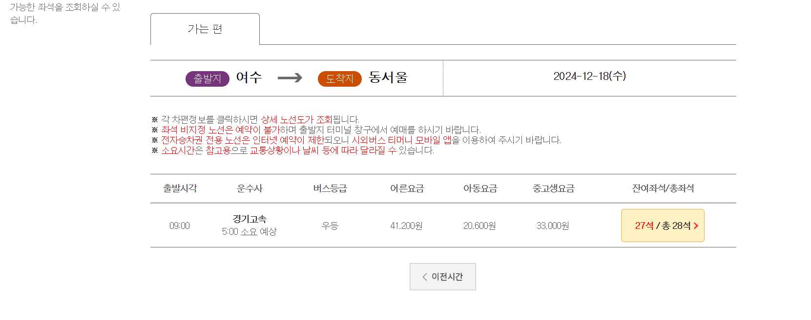 운행업체: 금호고속, 천일고속