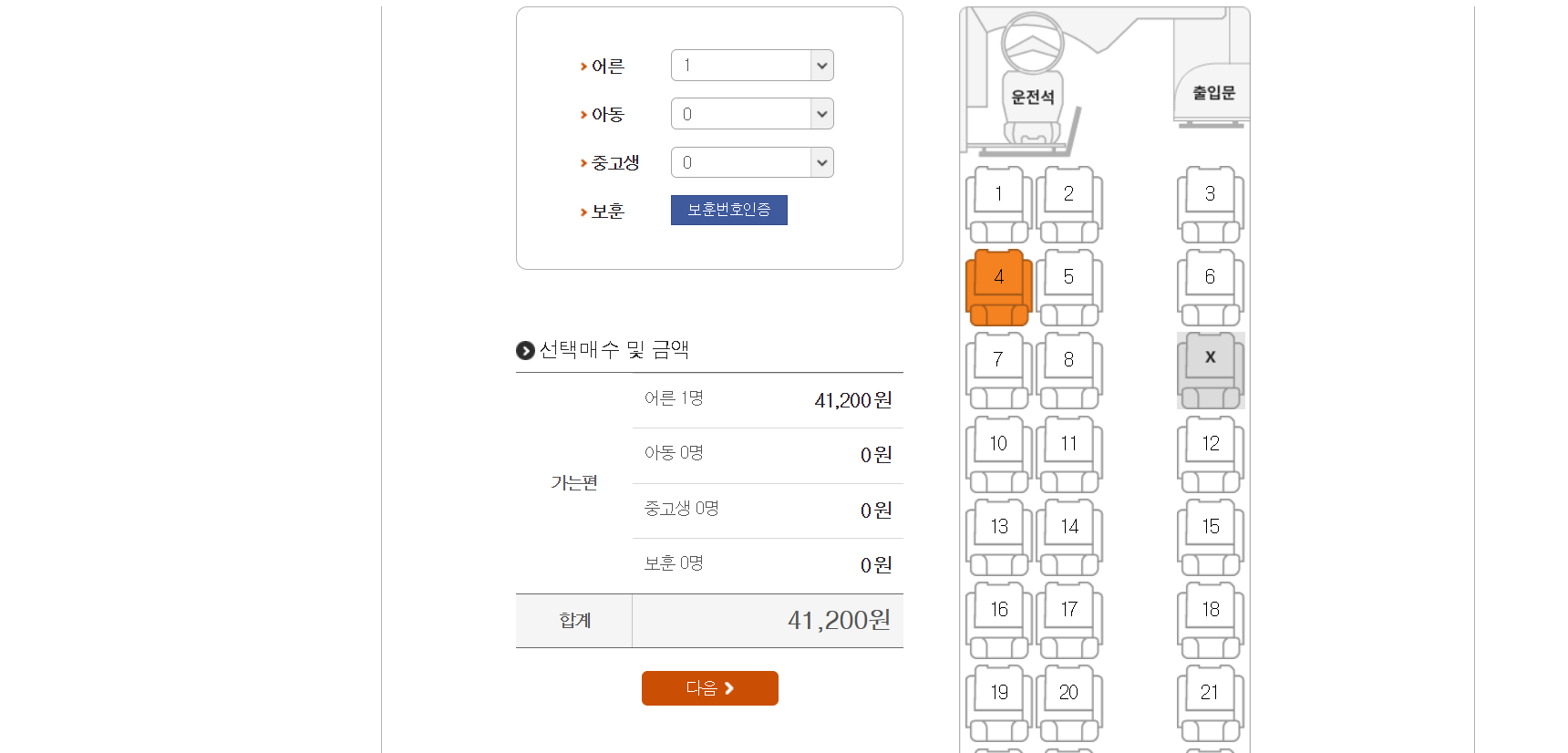 인원수를 입력하고 좌석을 선택합니다