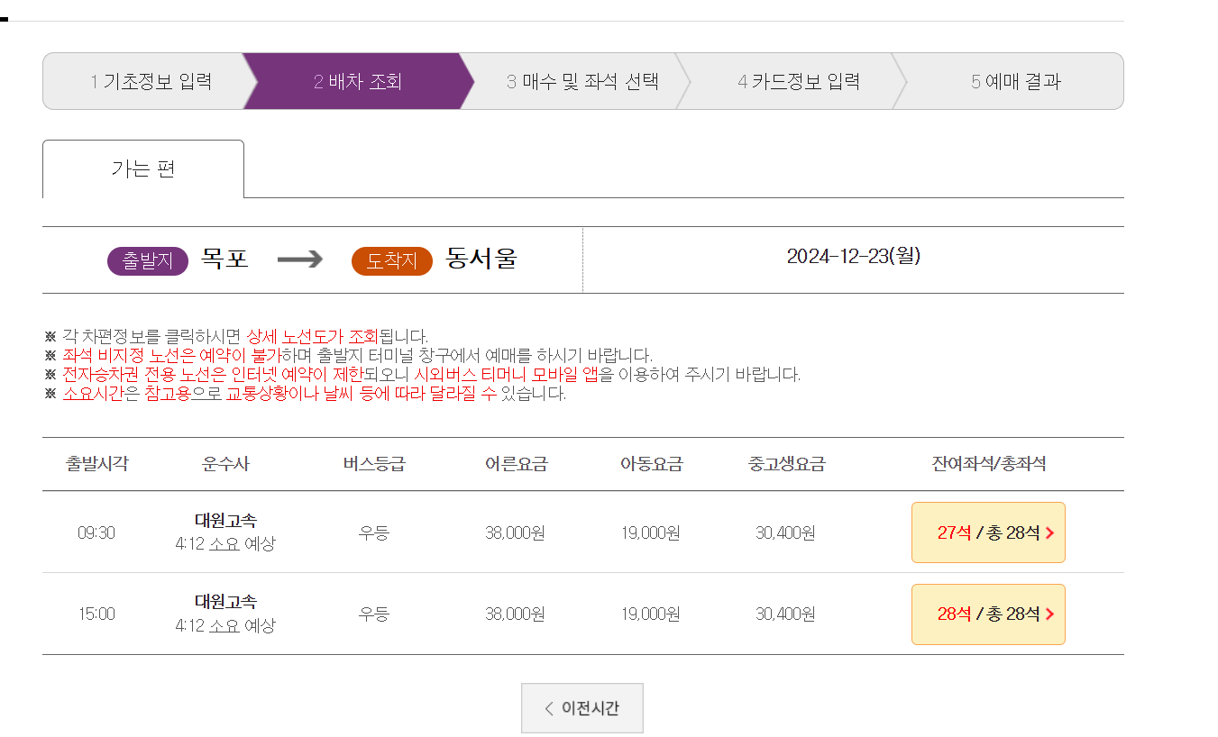 현장 예매: 목포 시외버스터미널 매표소에서 직접 예매합니다.
