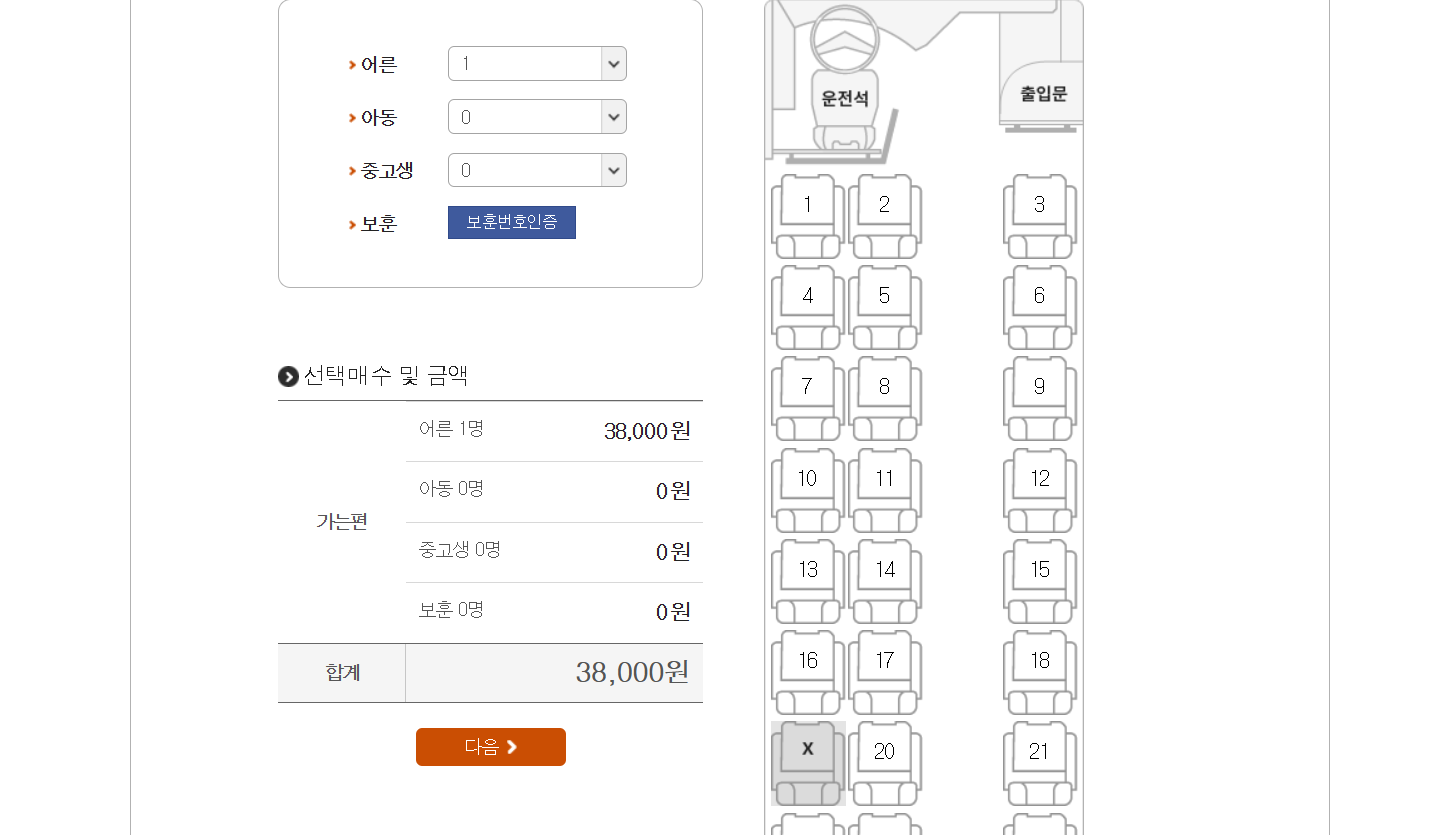 인원수를 입력하고 좌석을 선택합니다