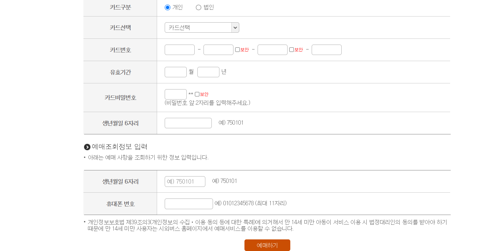 카드정보를 입력하여 예매를 완료합니다