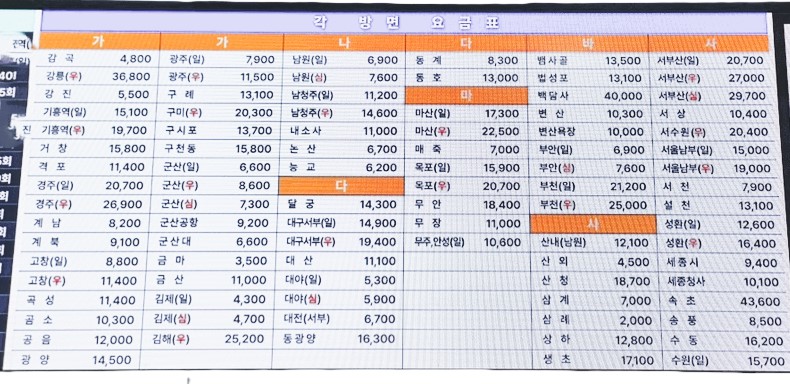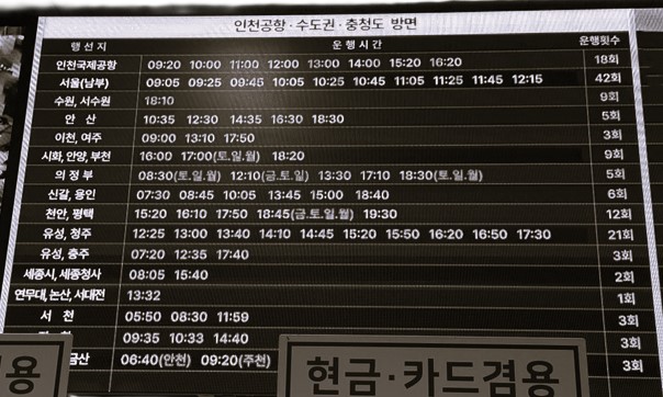 도착 시간: 출발 15-20분 전에는 터미널에 도착하세요.