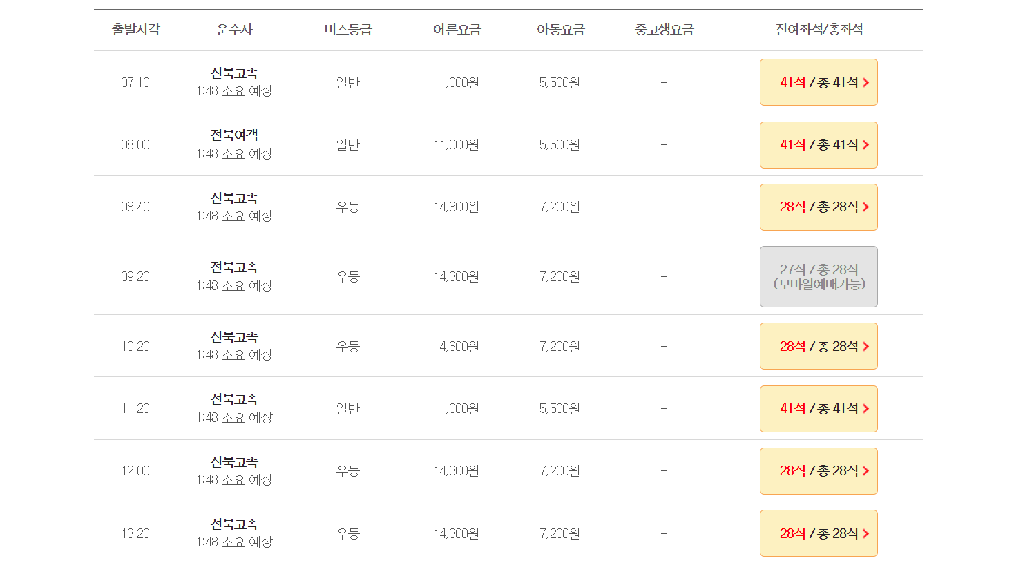특히 인천공항, 강릉, 서울(강남), 인천 등 장거리 노선의 경우 온라인 예매를 추천합니다