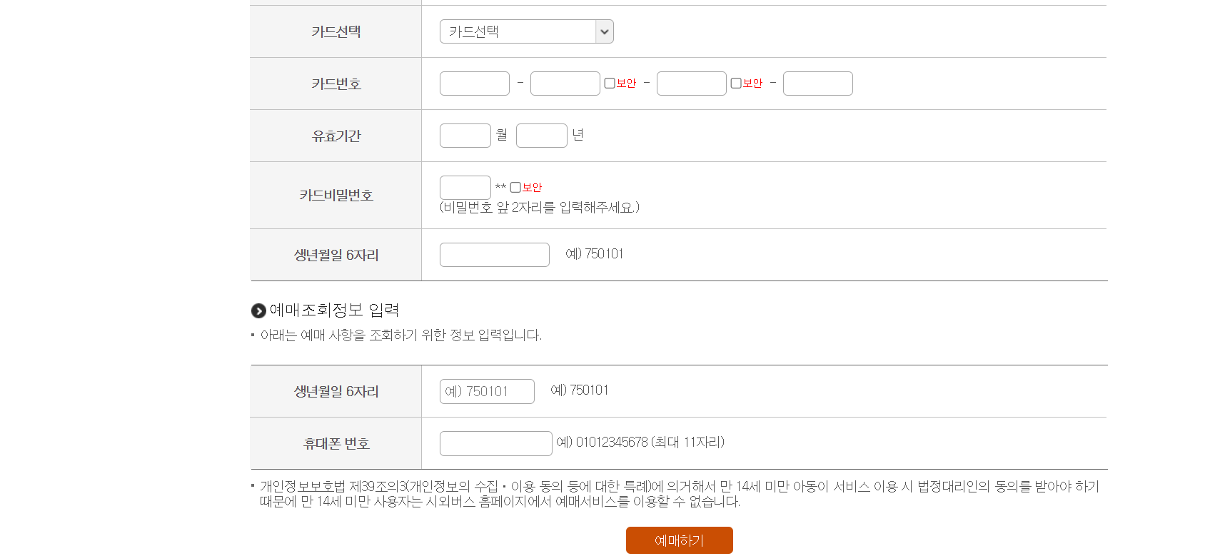 카드정보를 입력하여 예매를 완료합니다