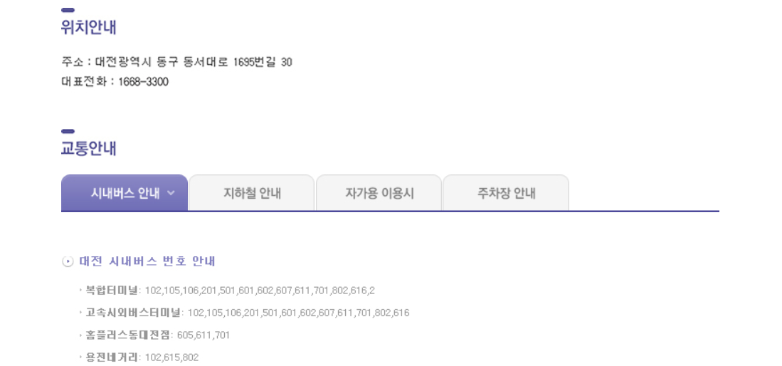 지하철: 유성온천역에서 도보로 약 10분 거리