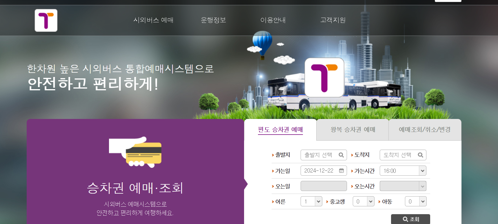 시외버스통합예매시스템 웹사이트나 앱을 이용