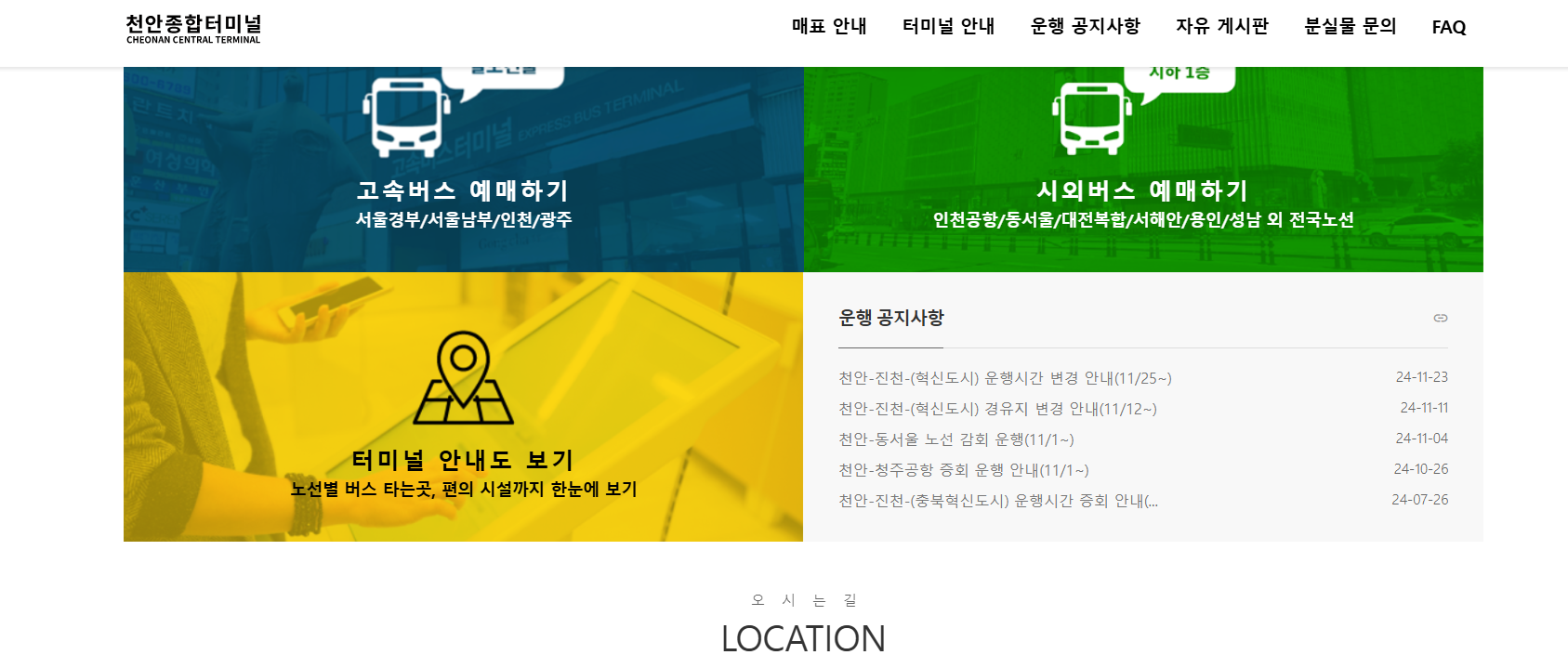 터미널 공식 홈페이지를 통해 예매 가능