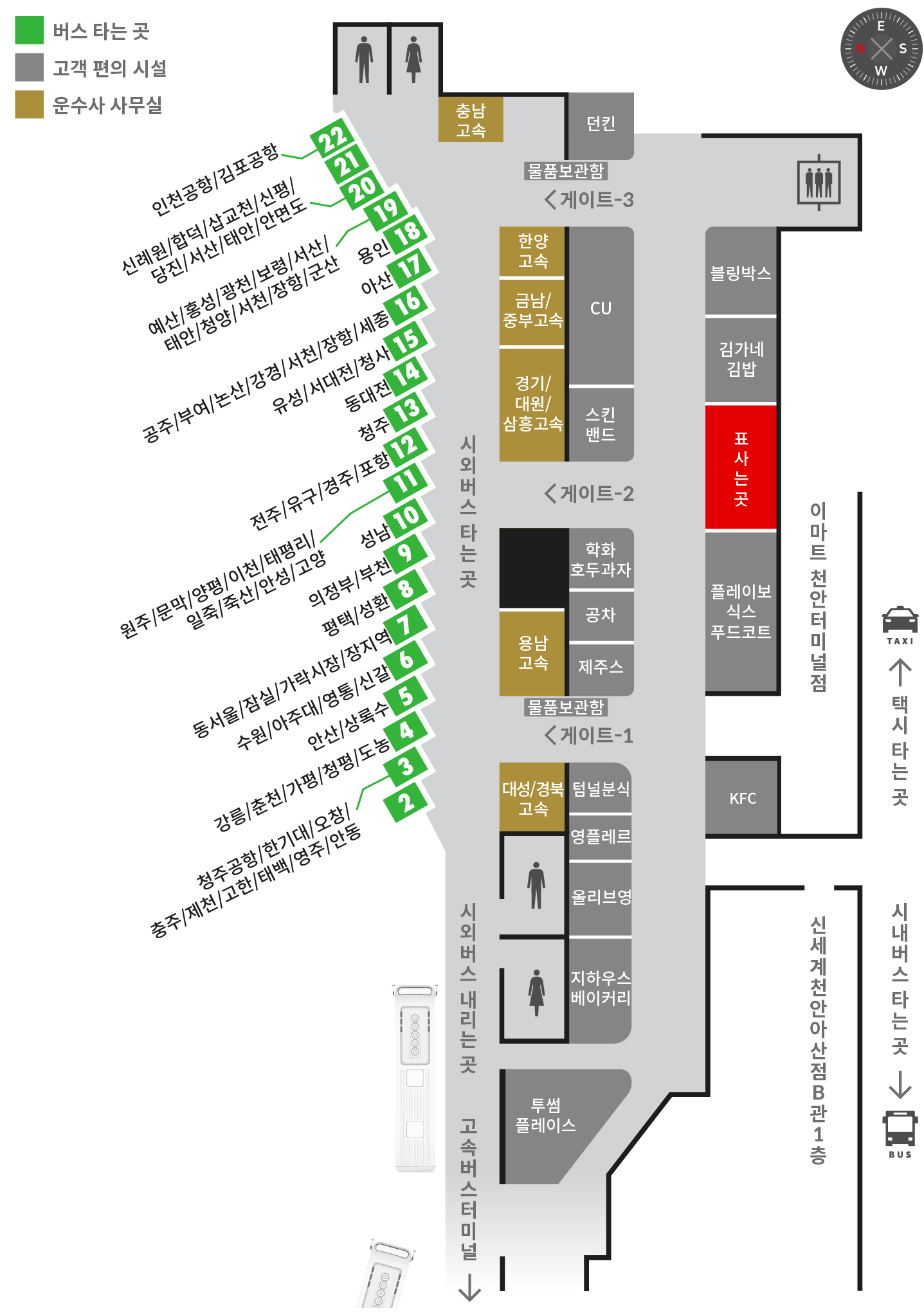 터미널 주변 시내버스, 택시 정류장 위치 확인