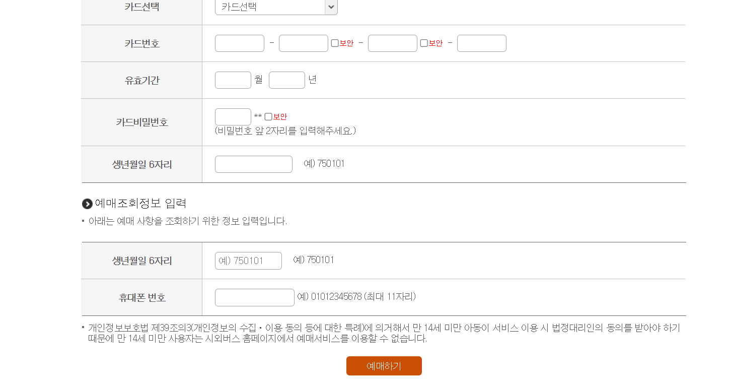 카드정보를 입력하여 예매를 완료합니다