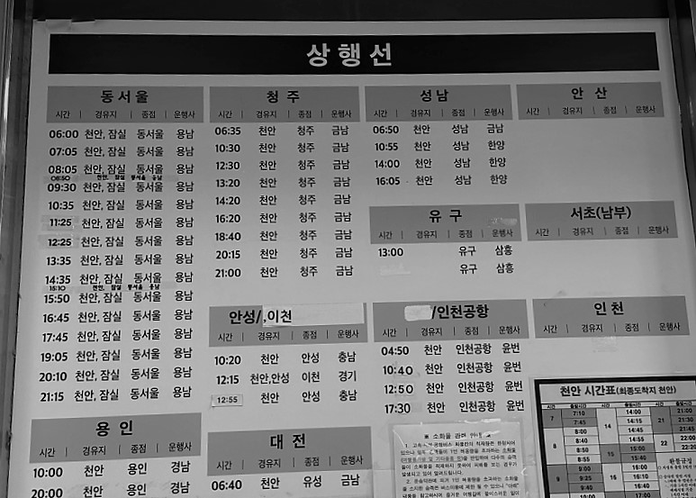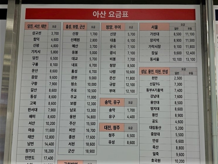 아산 시외버스터미널 시간표