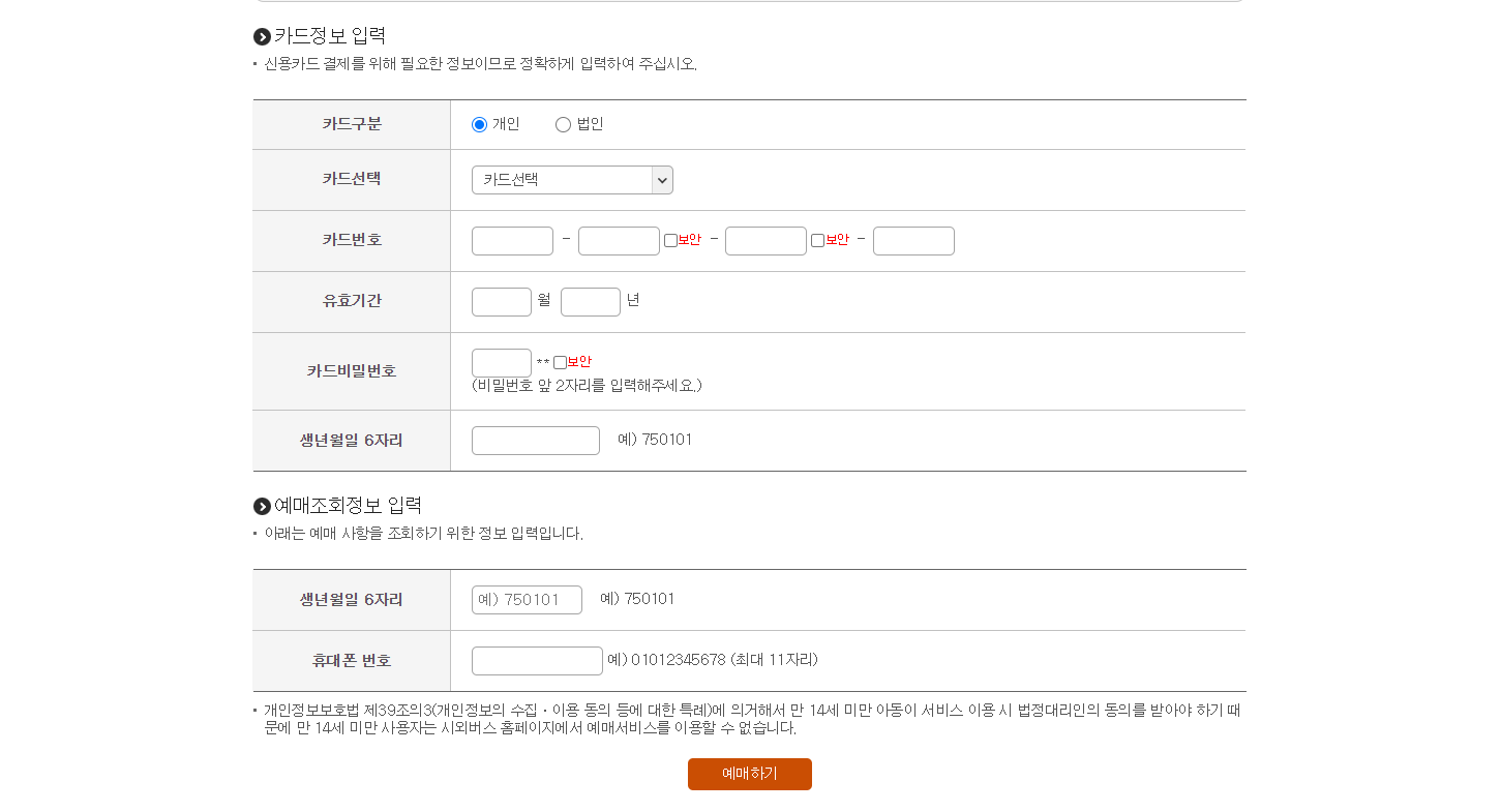 카드정보를 입력하여 예매를 완료합니다