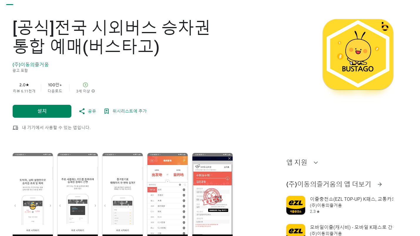 앱 스토어에서 '버스타고'를 검색하여 설치합니다.