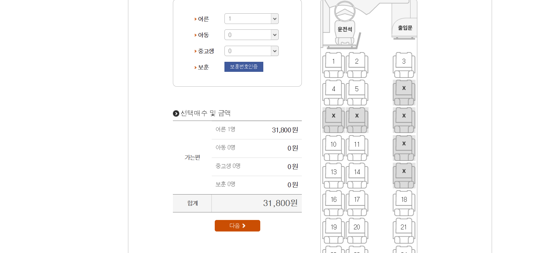 세종청사(우등): 10,200원