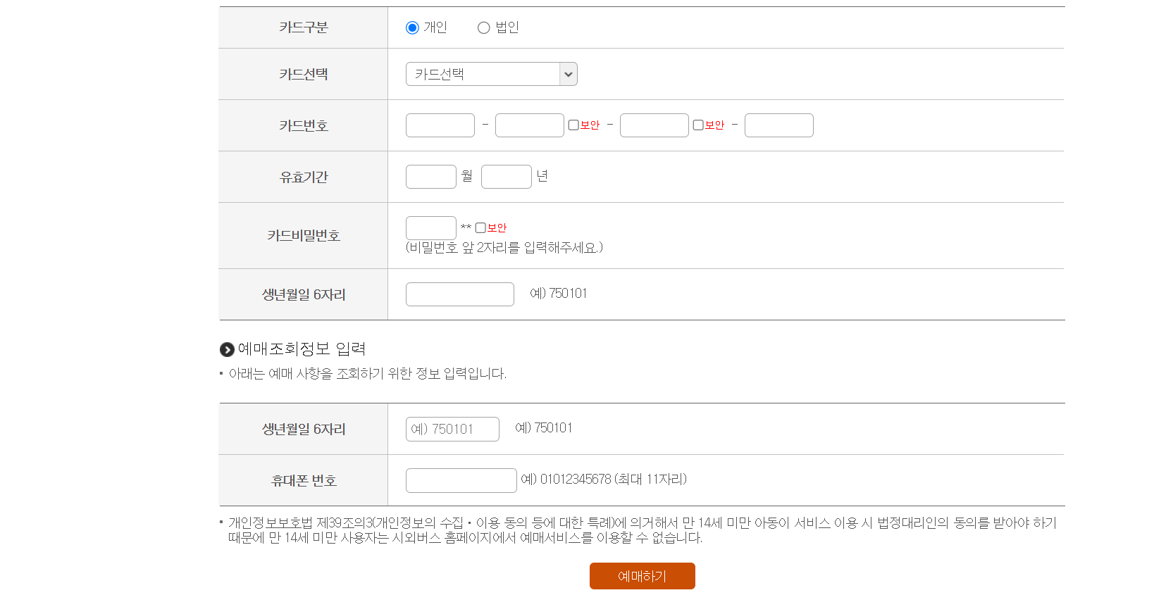 카드정보를 입력하여 예매를 완료합니다