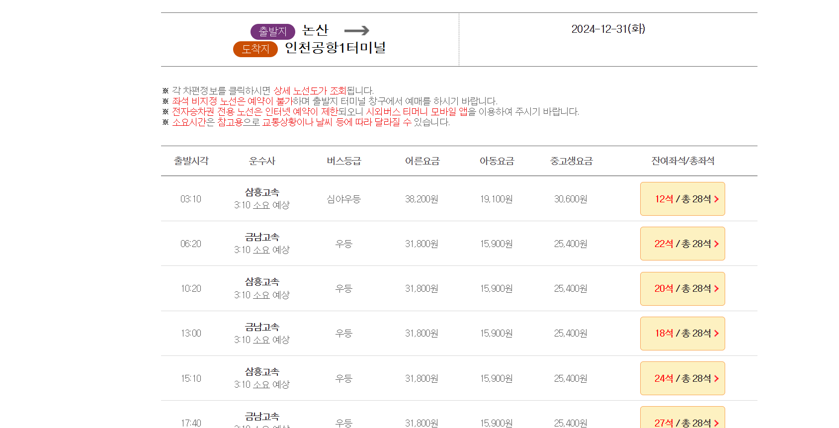인천공항(심야): 38,200원
