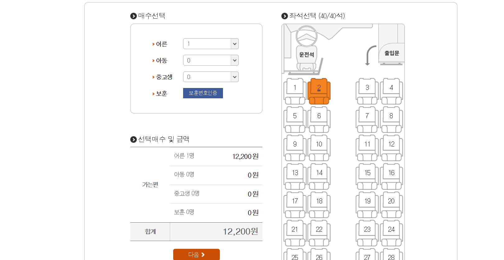 여정 정보 입력 및 버스 선택
