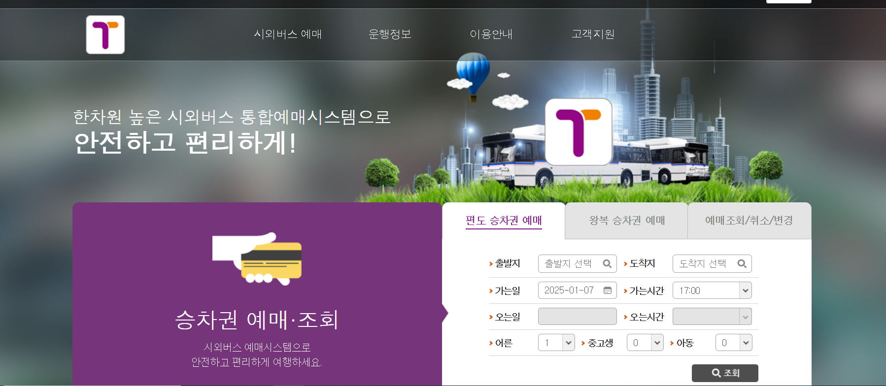 시외버스 예매는 편리하고 안전한 온라인 시스템을 통해 할 수 있습니다. 티머니(T-money)에서 운영하는 시외버스 통합예매 사이트를 이용하면 됩니다