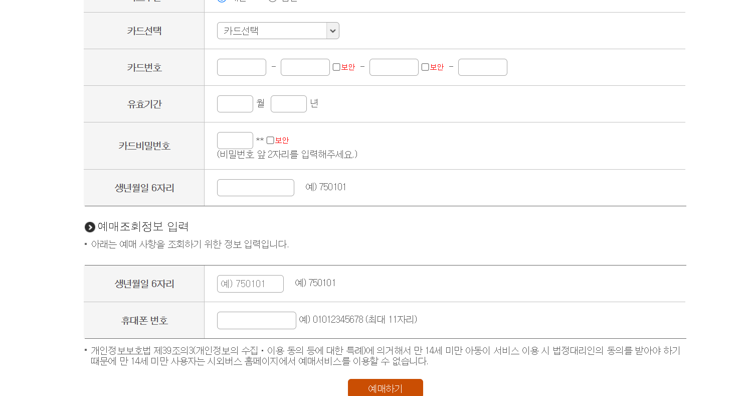 카드정보를 입력하여 예매를 완료합니다.