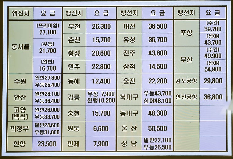 속초에서 서울로 가는 버스도 자주 운행됩니다. 우등버스와 일반버스가 있어 선택의 폭이 넓습니다.