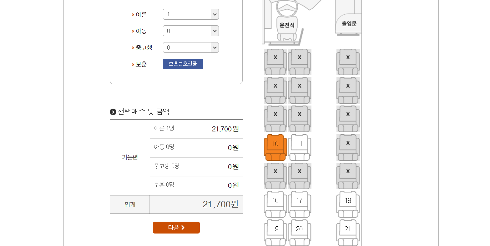 인원수를 입력하고 좌석을 선택합니다.