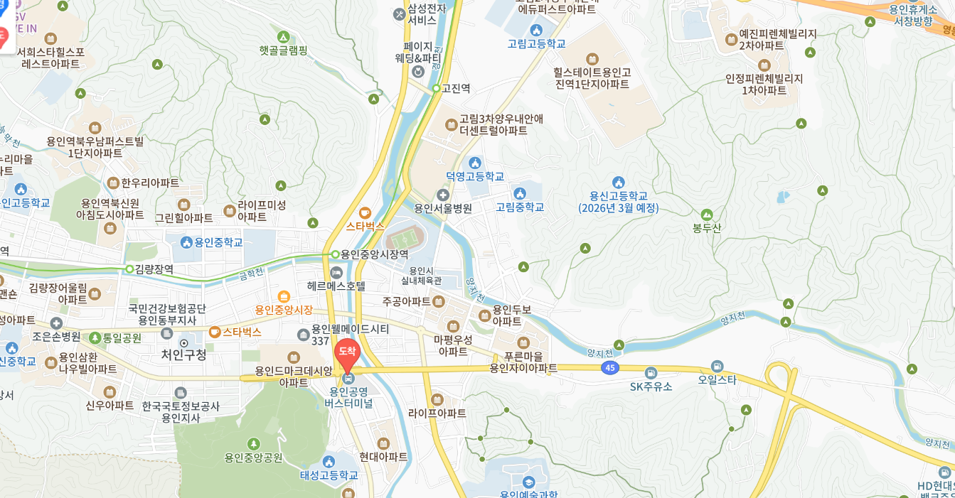 출발지를 '용인'으로, 도착지를 원하는 목적지로 선택합니다
