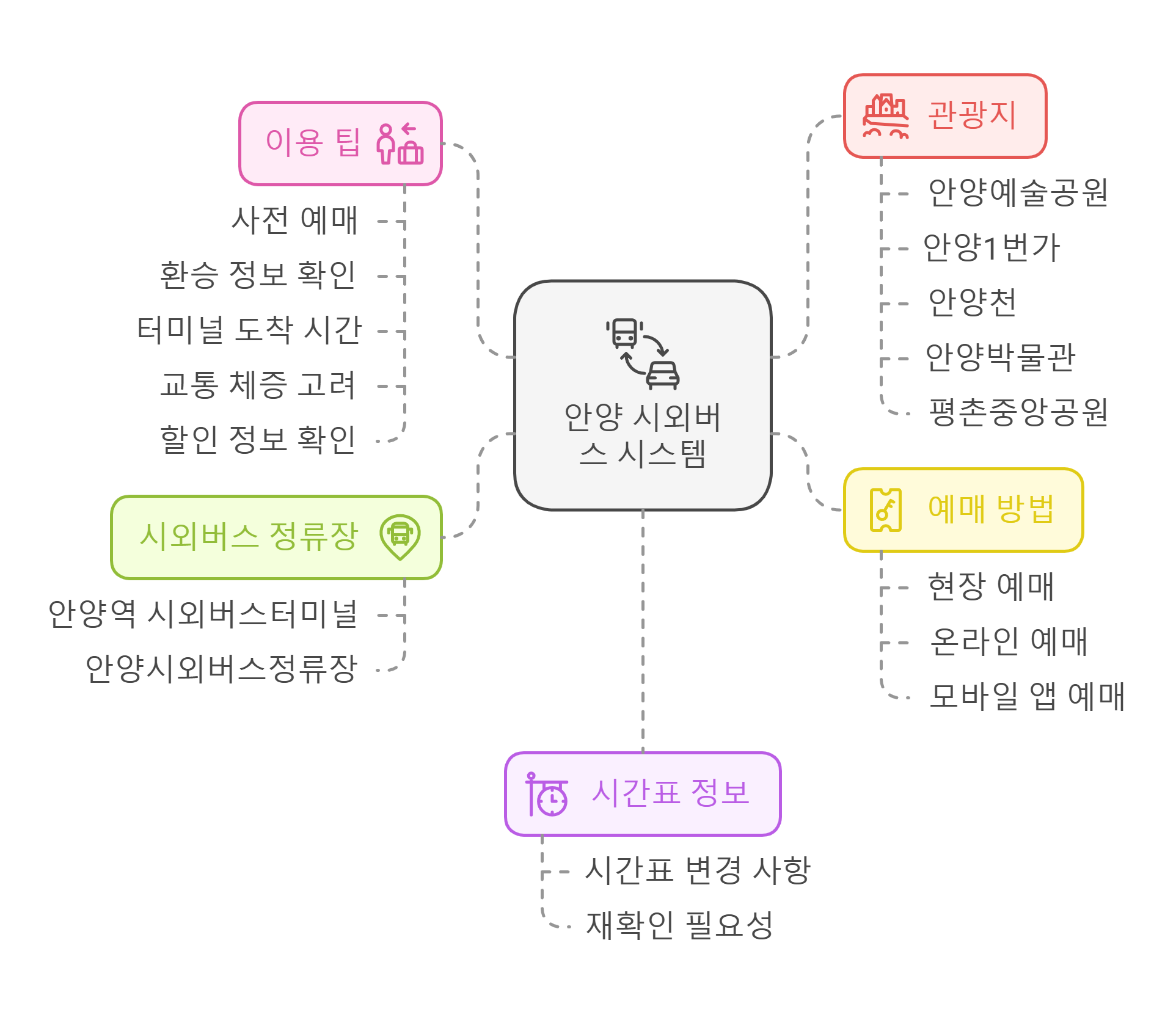 안양의 시외버스 시스템은 여러 정류장으로 분산되어 있어 처음 이용하는 사람들에게는 다소 복잡할 수 있습니다. 하지만 각 정류장의 위치와 운행 노선을 잘 파악하고, 온라인 예매 시스템을 활용한다면 편리하게 이용할 수 있습니다. 시외버스는 안양과 다른 지역을 연결하는 중요한 교통수단이므로, 이 정보를 참고하여 안전하고 편안한 여행을 즐기시기 바랍니다.
