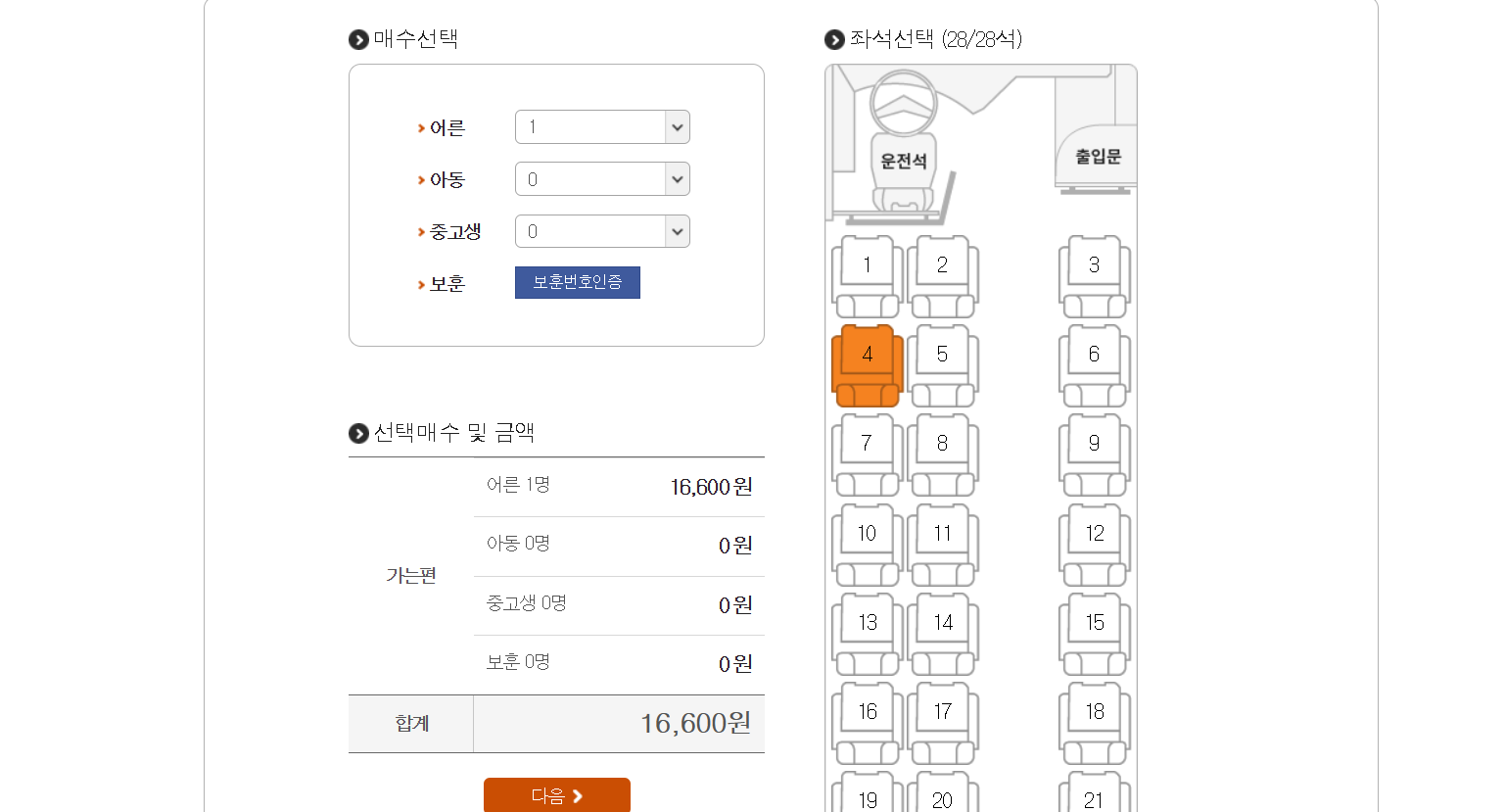 인원수를 입력하고 좌석을 선택합니다