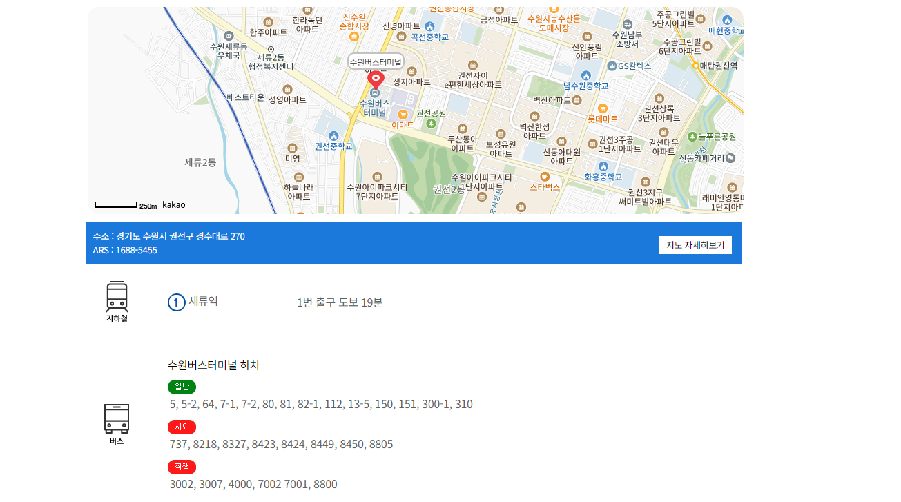 지하철: 수원역에서 버스나 택시를 이용하여 터미널로 이동할 수 있습니다.