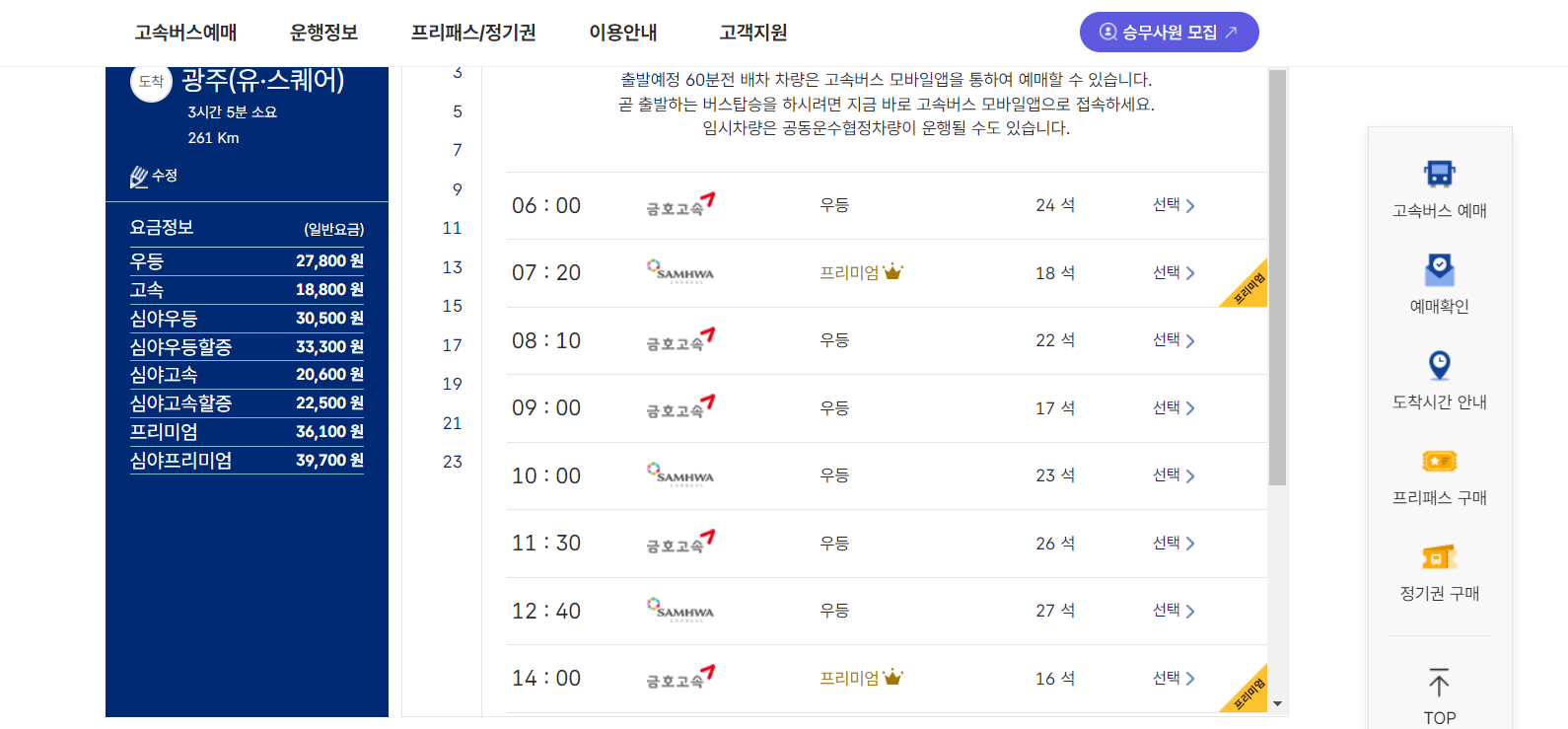 터미널 현장 예매: 터미널 내 매표소에서 직접 예매가 가능합니다. 출발 당일 예매 시에는 현장 예매가 더 편리할 수 있습니다.
