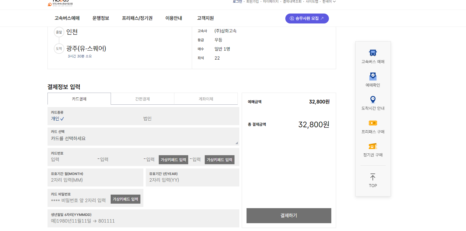 인천고속버스 터미널의 버스 예매는 다음과 같은 방법으로 가능합니다: