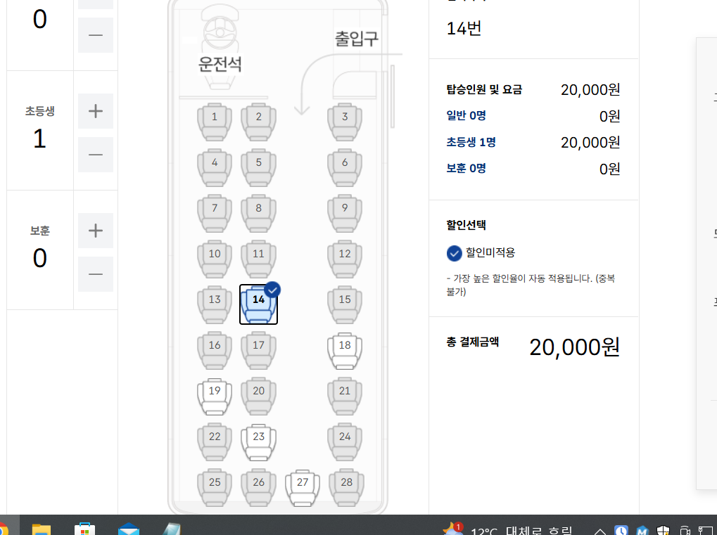 온라인 예매의 경우, 출발 1개월 전부터 예매가 가능하며, 출발 20분 전까지 예매할 수 있습니다.