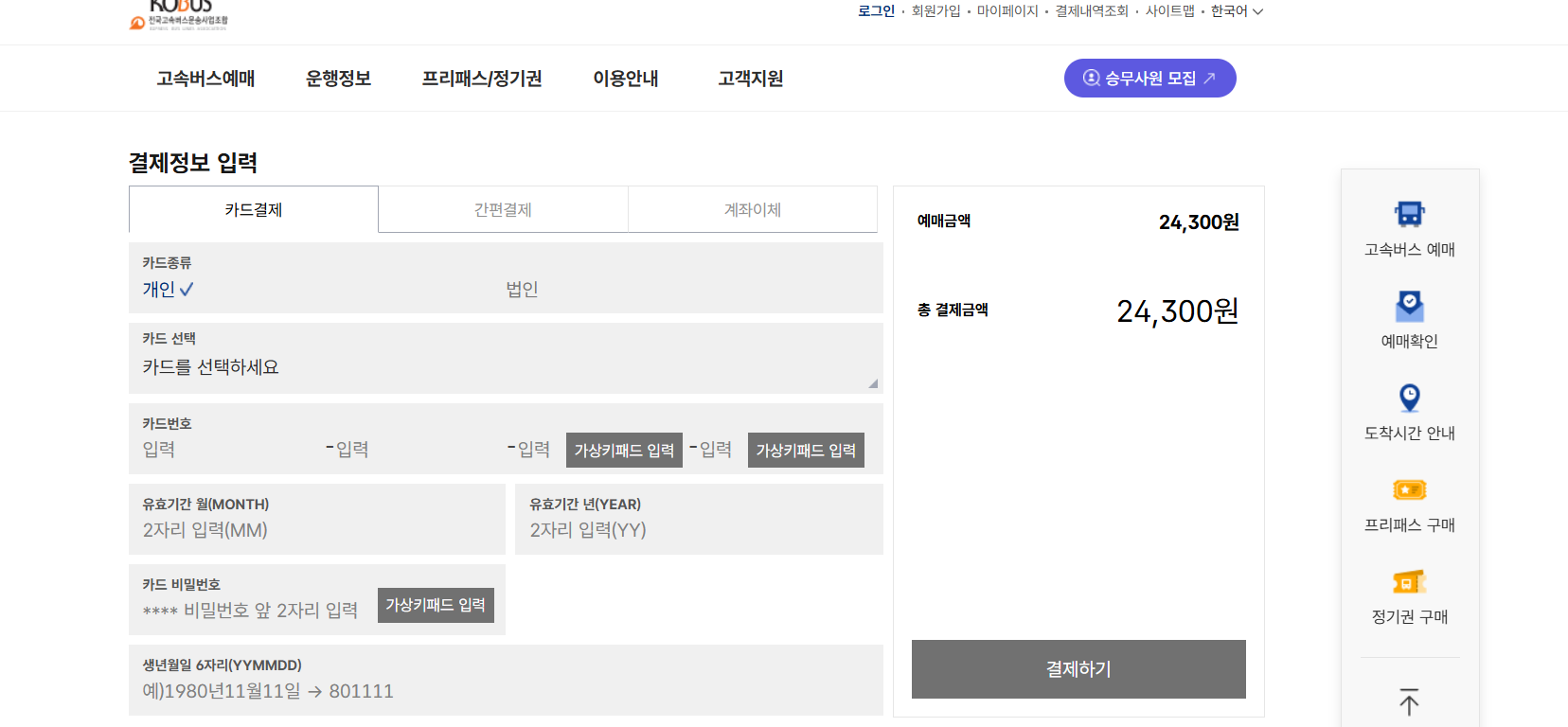 정읍 고속버스터미널 예매 방법