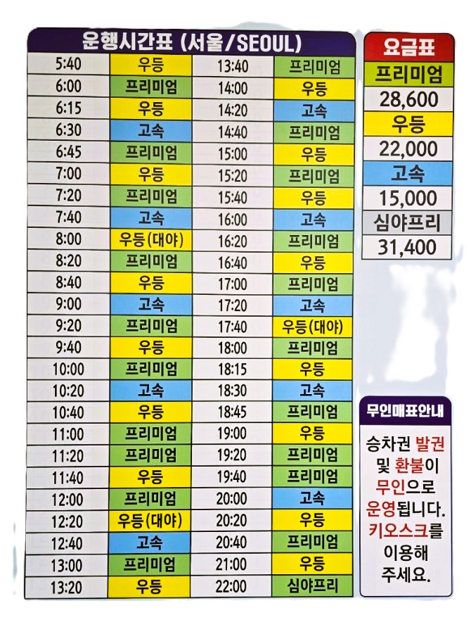 모바일 앱: '고속버스 모바일' 앱을 통해 언제 어디서나 시간표 확인