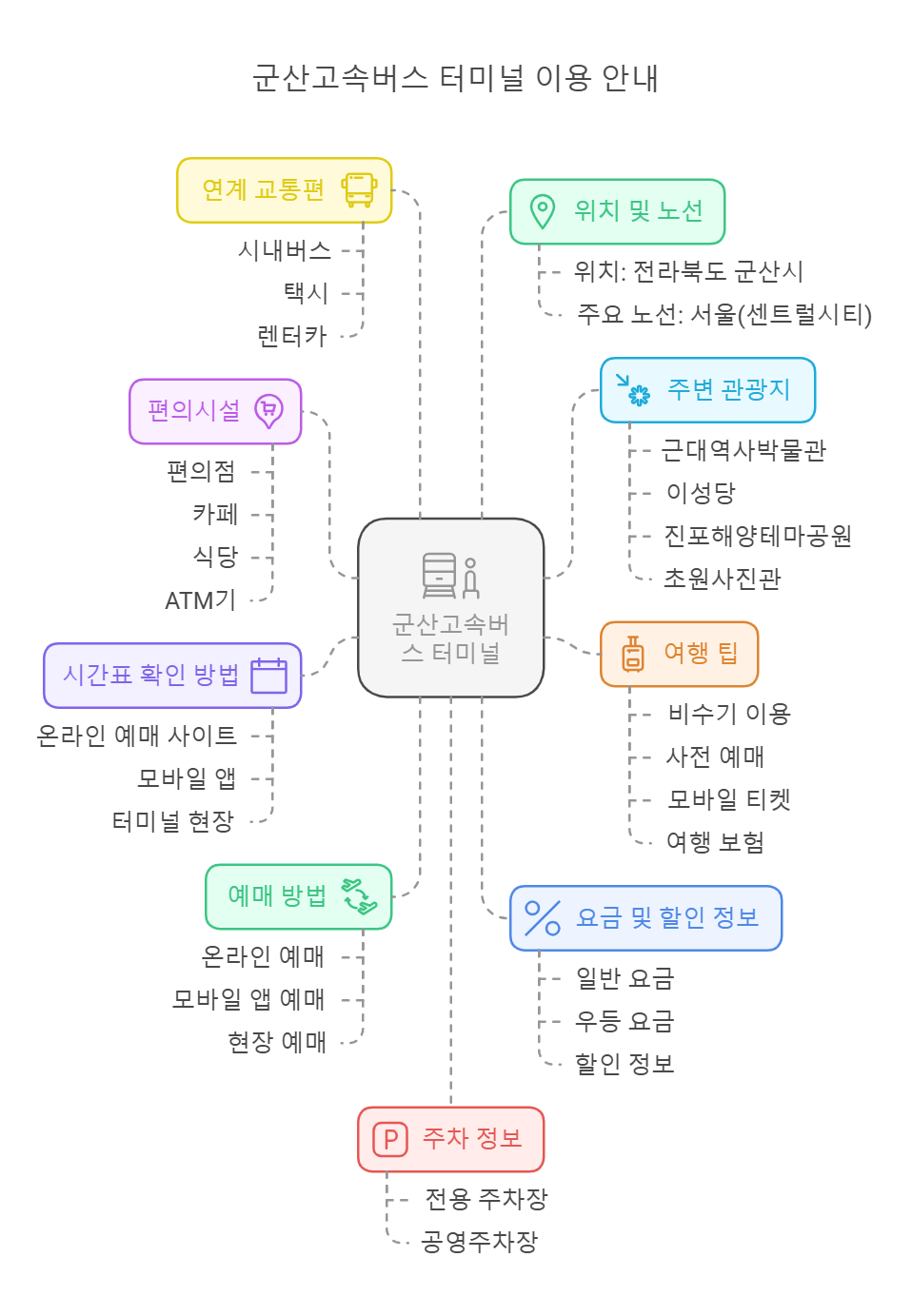 군산고속버스 터미널은 군산을 방문하거나 떠나는 여행객들에게 중요한 교통 허브입니다. 시간표 확인과 예매 방법을 숙지하고, 할인 정보와 주의사항을 잘 살펴본다면 더욱 편리하고 경제적인 여행이 가능할 것입니다. 군산의 아름다운 근대 문화유산과 해양 경관을 즐기시면서, 안전하고 즐거운 여행 되시기를 바랍니다.