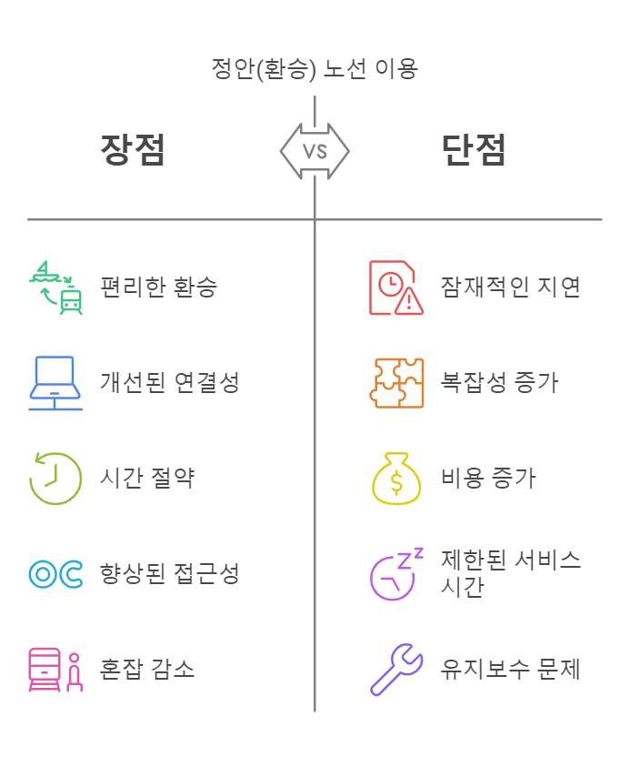 환승 정보 확인: 일부 노선은 환승이 필요할 수 있으므로 사전에 확인하세요.