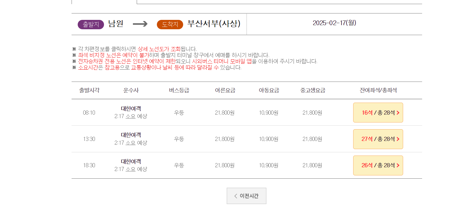 남원공용버스터미널에서 버스를 예매하는 방법은 다음과 같습니다: