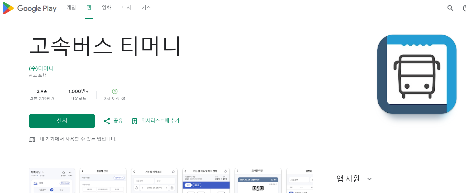 앱스토어에서 '고속버스 티머니' 앱 다운로드 및 설치