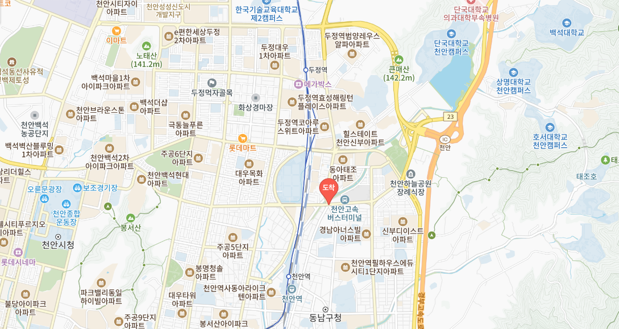 주소: 충청남도 천안시 동남구 만남로 43 (고속버스는 신부동 363-2)2