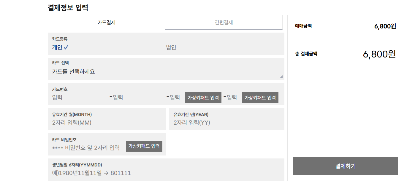 결제 정보 입력 및 결제 완료