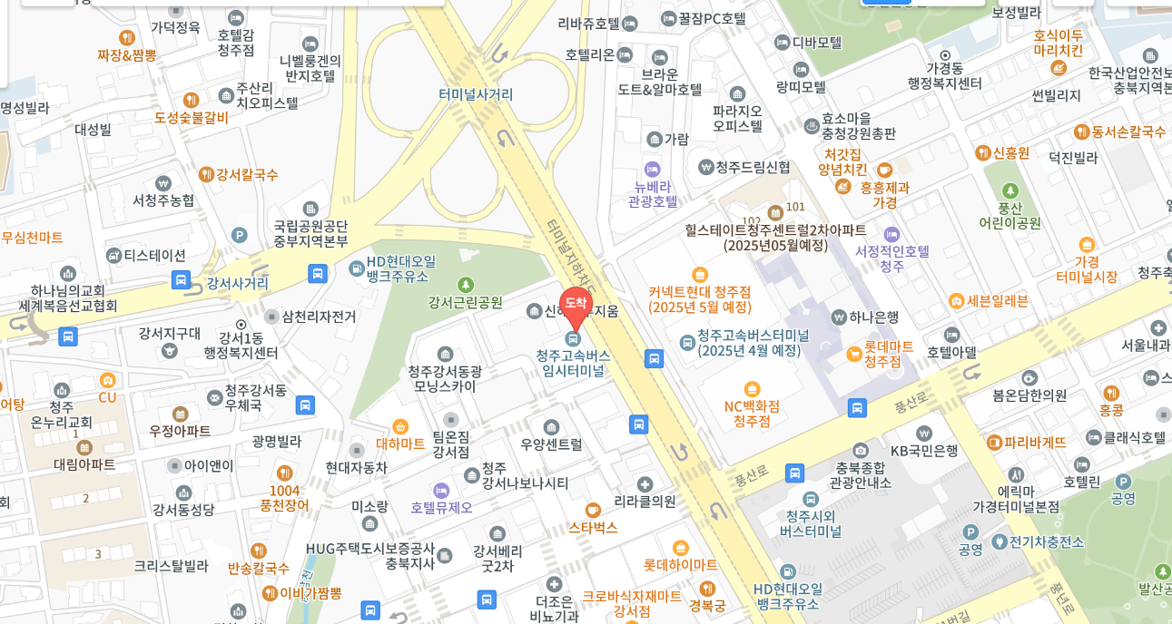 위치: 충북 청주시 흥덕구 가경동 1449 (고속터미널에서 도보 약 5분 거리)